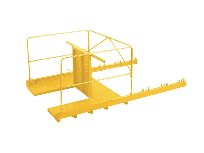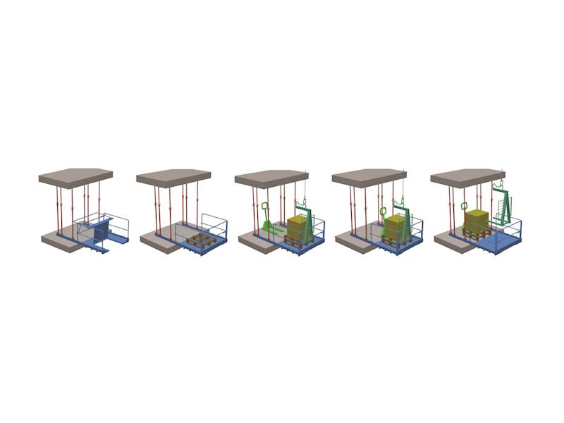 Jeřábová nákladová platforma pro příjem materiálu na stavbách výškových budov. V provedení plná nebo s prostupným otvorem pro pohyb manipulovaného materiálu, v případě umístění plošin nad sebou.