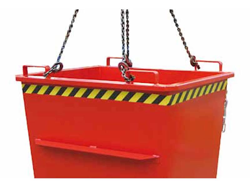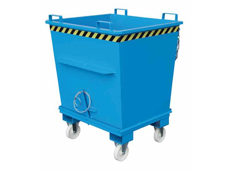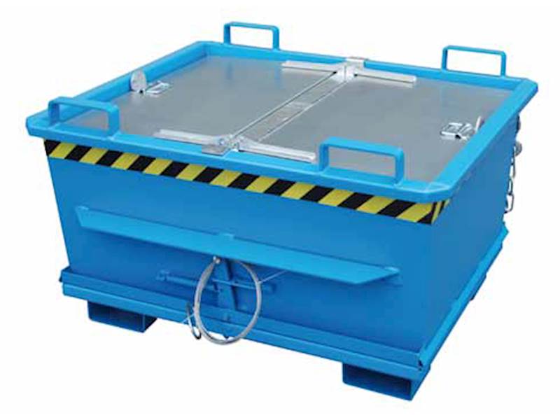 Nosnost až 2000 kg. Robustní zesílená konstrukce. Výklopné dno se zavře automaticky ve chvíli, kdy kontejner dosedne na zem. Úhel otevření 90°. Ochrana proti neúmyslnému vyklopení. Kontejnery lze stohovat, pokud je víko zavřené. Přídavné zařízení pro VZV.